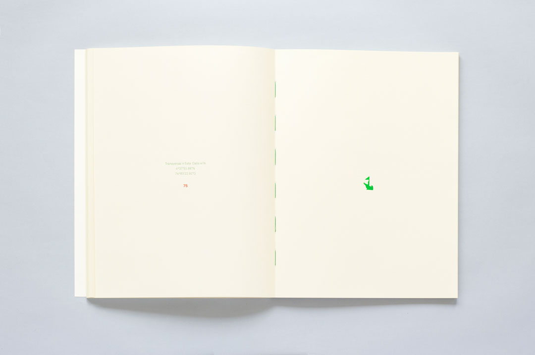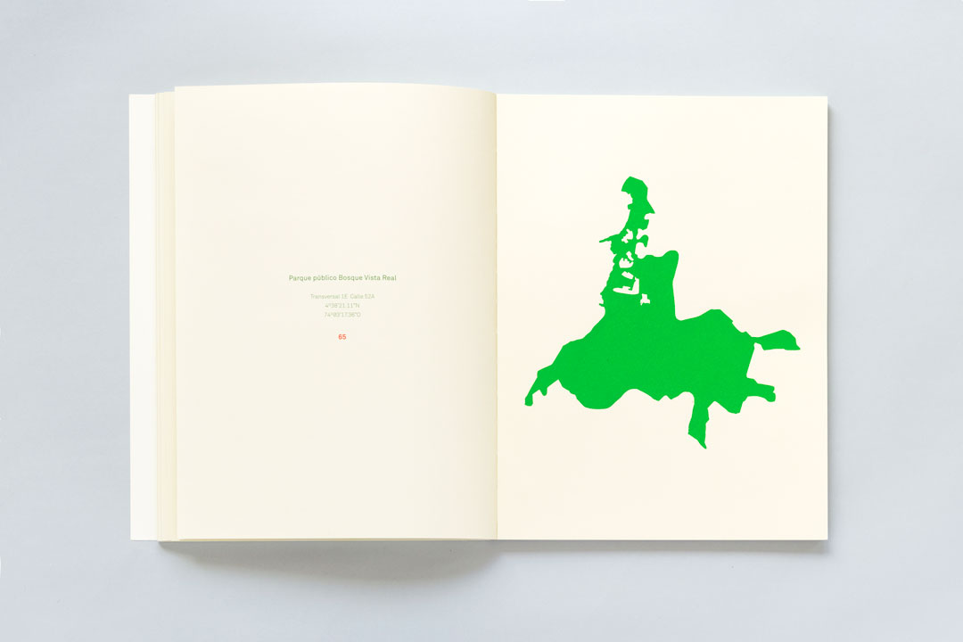 Oasis is part of an ongoing project by artist Giovanni Vargas titled Apuntes para una historia de Chapinero (Notes for a history of Chapinero). The project which acts as a kind of log has gone through many phases and taken on many forms which act in response to the urban transformations of Chapinero Alto, a neighborhood of Bogotá in which Giovanni has been residing for fifteen years. Oasis consists of 100 digitally traced figures which are then screenprinted on paper. The abstract forms of every figure obey to the shapes of areas in the neighborhood with green spaces, meaning spaces with nature, (parks, empty or derelict lots, crossing spaces..) Some of these mapped areas have survived and others have disappeared during the project’s development which has been unfolding for several years.